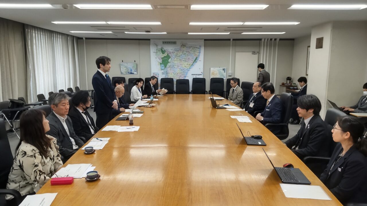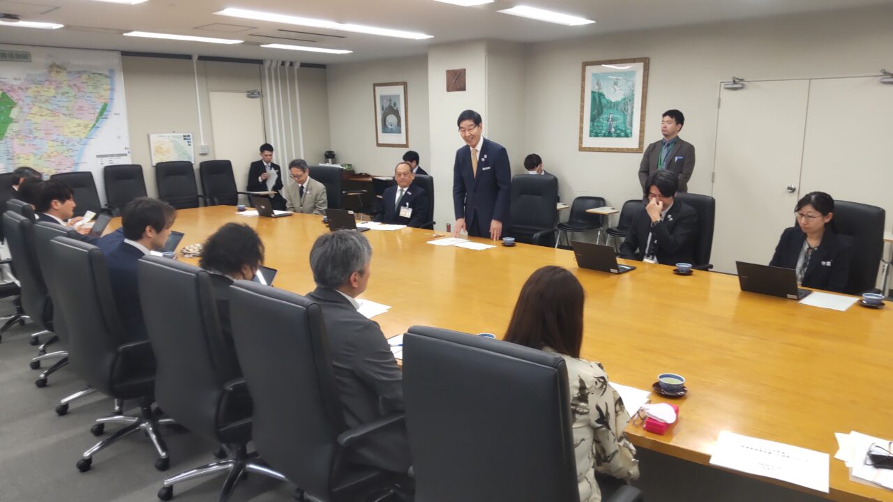 まずは服部区長より水内議長に回答書が手渡されたあと、水内議長と服部区長からそれぞれご挨拶を頂きました。その後、福田総務課長より回答書の内容を分野ごとに抜粋し、ご説明頂いたうえで意見交換を行いました。