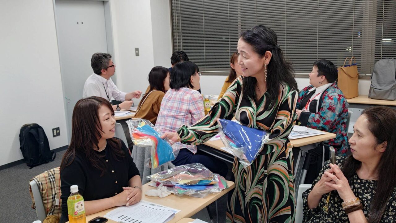 続いて、株式会社カラークチュール代表・髙橋利予氏を講師に迎え、「パーソナルカラー診断と解説」を実施しました。参加者は自身に似合う色の特徴やコーディネートのポイントについて学び、講師からの丁寧なアドバイスに熱心に耳を傾けていました。講師が参加者の席を回って、ひとりひとりのベースカラー(ブルベ・イエベ)と季節(四季)を判定してくれたので、大変盛り上がりました。今回の参加者は、「ブルベ・冬」タイプが最も多い結果となりました。