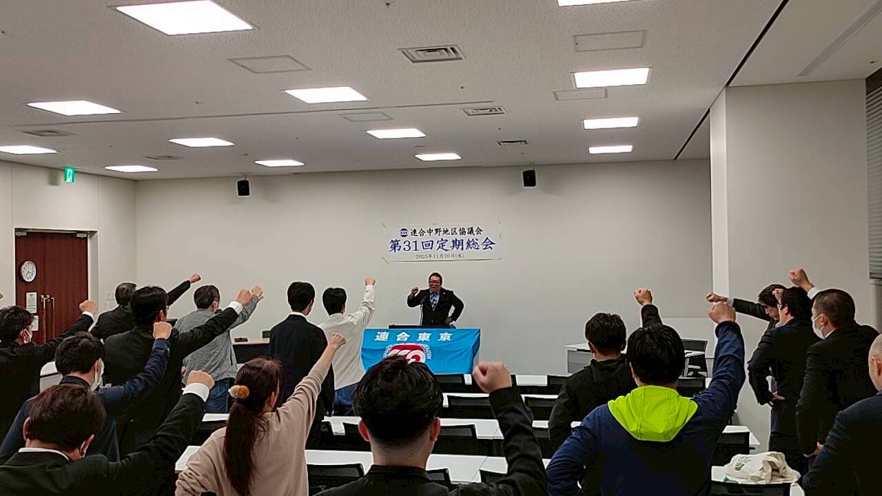 連合中野地区協は、11月26日(水)18:00~中野セントラルパークカンファレンスにて「第31回定期総会」を開催し、代議員19名、地区協役員10名、来賓12名が参加しました。