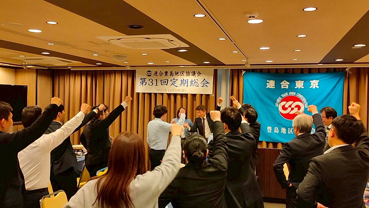 連合豊島地区協は、12月5日(金)18:00~YRイベントホールにて「第31回定期総会」を開催し、代議員21名、地区協役員9名、来賓11名が参加しました。