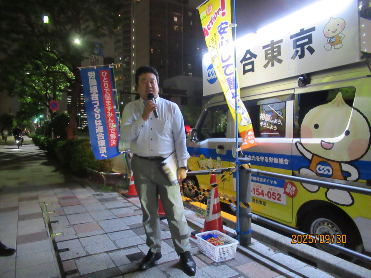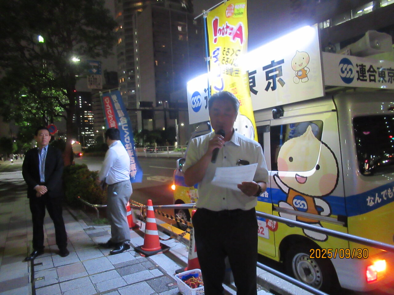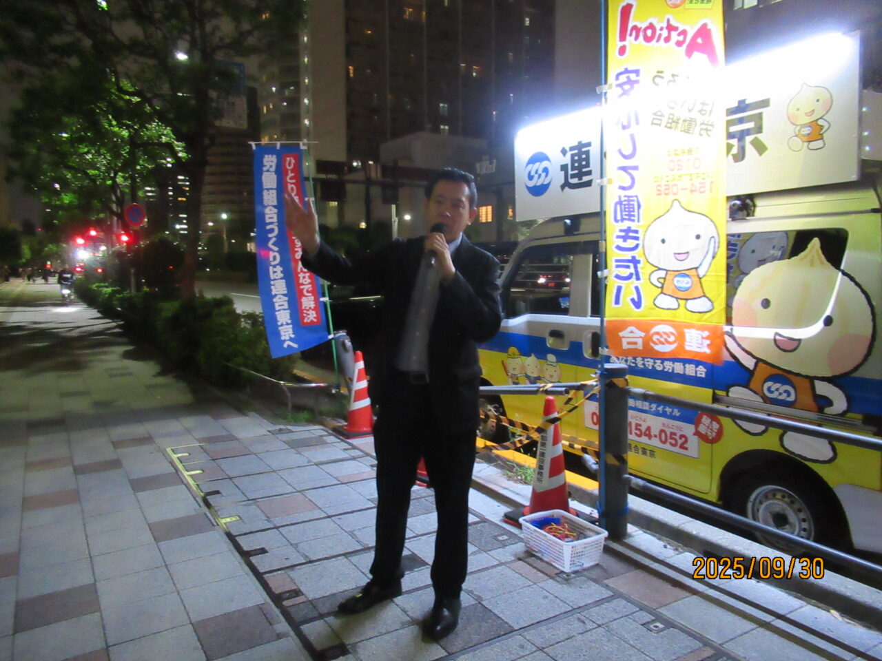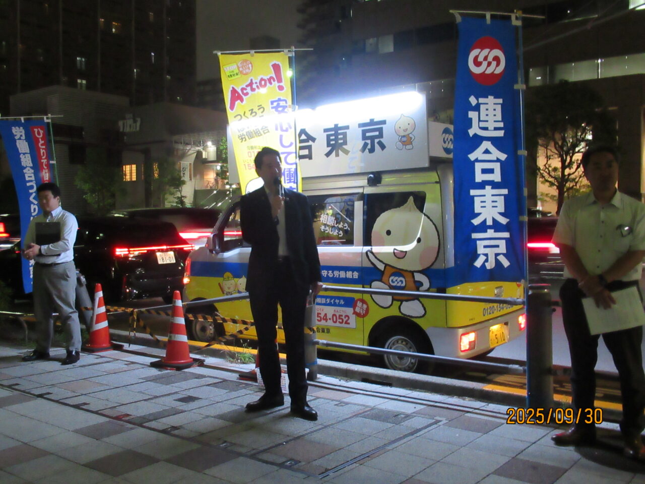 連合中央地区協は9月30日(火)18時から勝どき駅前で、2025労働基準月間街宣行動を実施しました。
