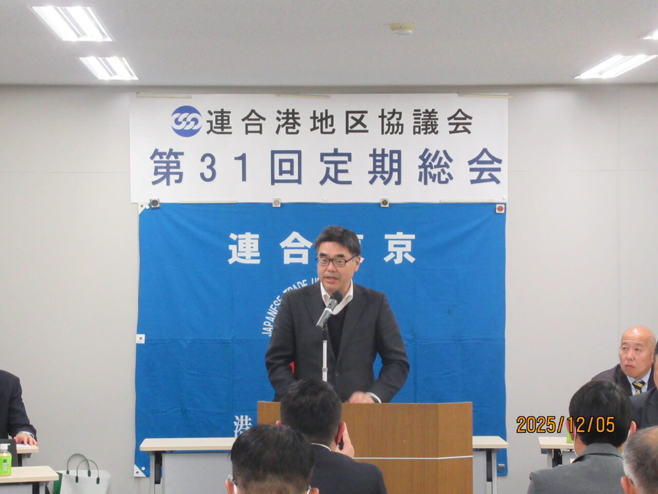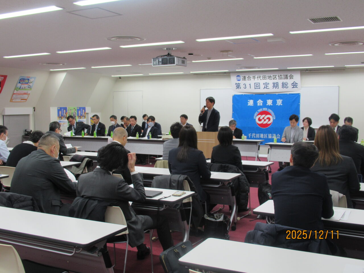 連合港地区協は2025年12月5日(金)18:00より、連合東京3階会議室において第31回定期総会を開催しました。地区協委員、来賓、役員など、計45名が参集しました。(オンライン含む)