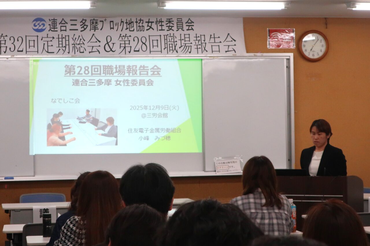 12月9日、連合三多摩女性委員会は「第32回女性委員会定期総会&第28回職場報告会」を三多摩労働会館にて開催しました。