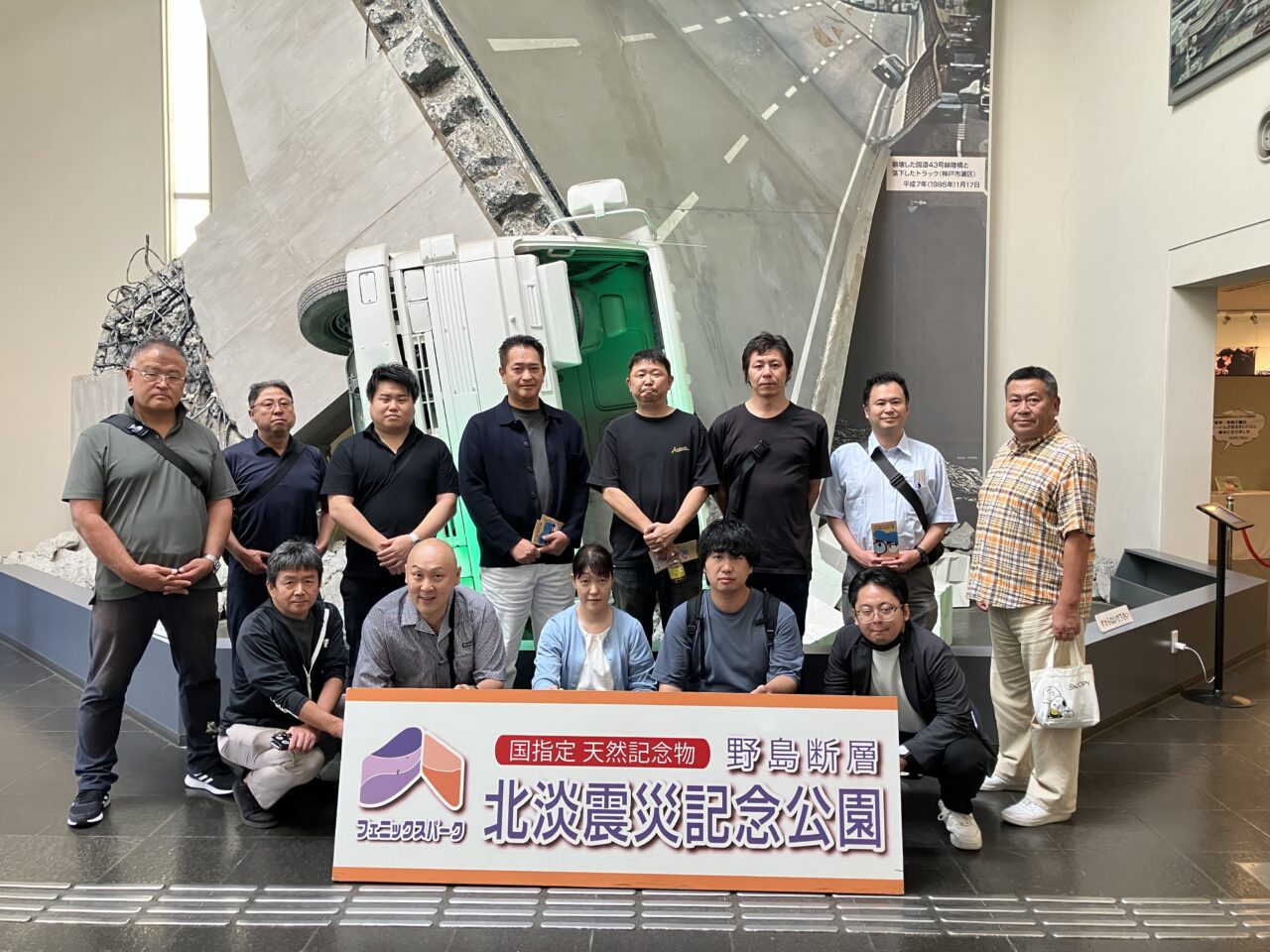 初日は新神戸にある「人と防災未来センター」を視察、当時の震災について学びました。その後、幹事会を開催。次の日は、淡路島まで足を延ばし、「北淡震災記念公園」と「野島断層保存館」を見学。そこで語り部の話に耳を傾け涙しました。