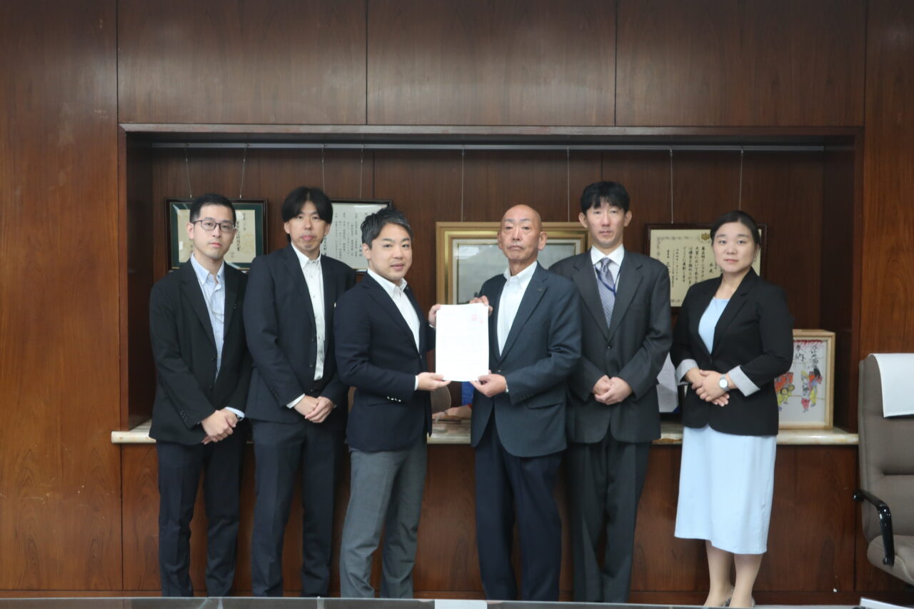 土岐議長から濵﨑市長に、2026年度の「働く者が安心して暮らせるまちづくりに関する要請書」を手交しました。