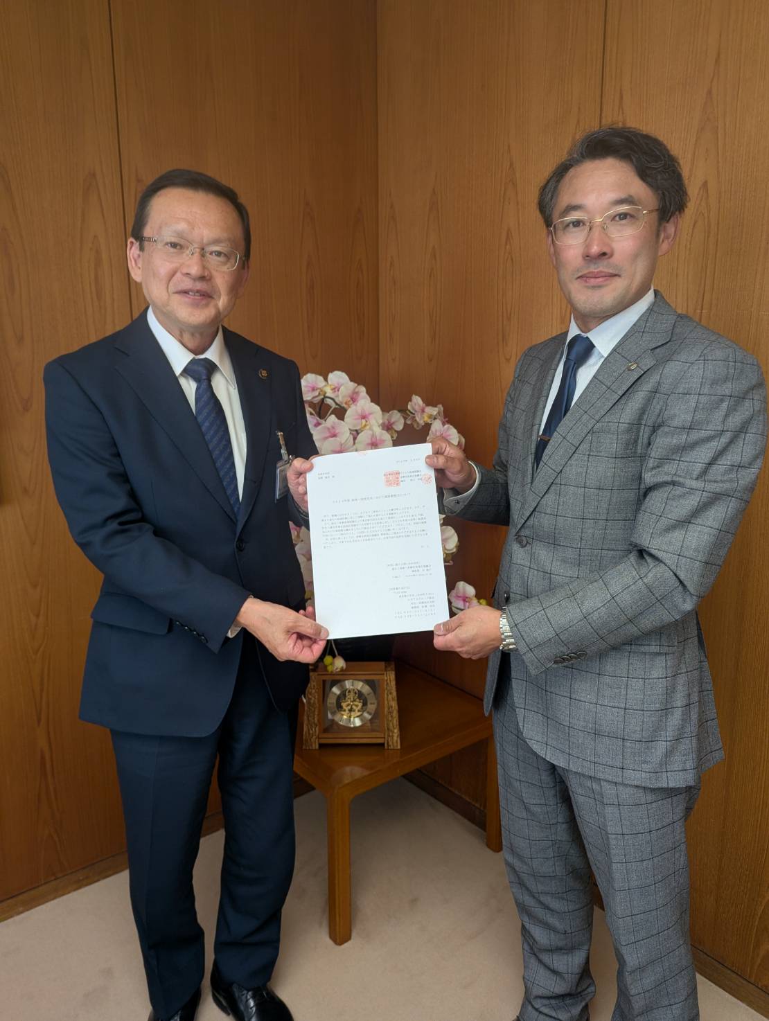 柴山議長から池澤市長に、2026年度の「働く者が安心して暮らせるまちづくりに関する要請書」を手交し、各大項目の中から重点項目を中心に柴山議長が説明を行いました。