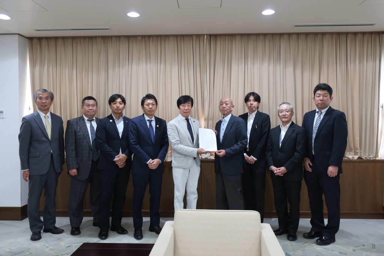 土岐議長から臼井市長に、2026年度の「働く者が安心して暮らせるまちづくりに関する要請書」を手交しました。