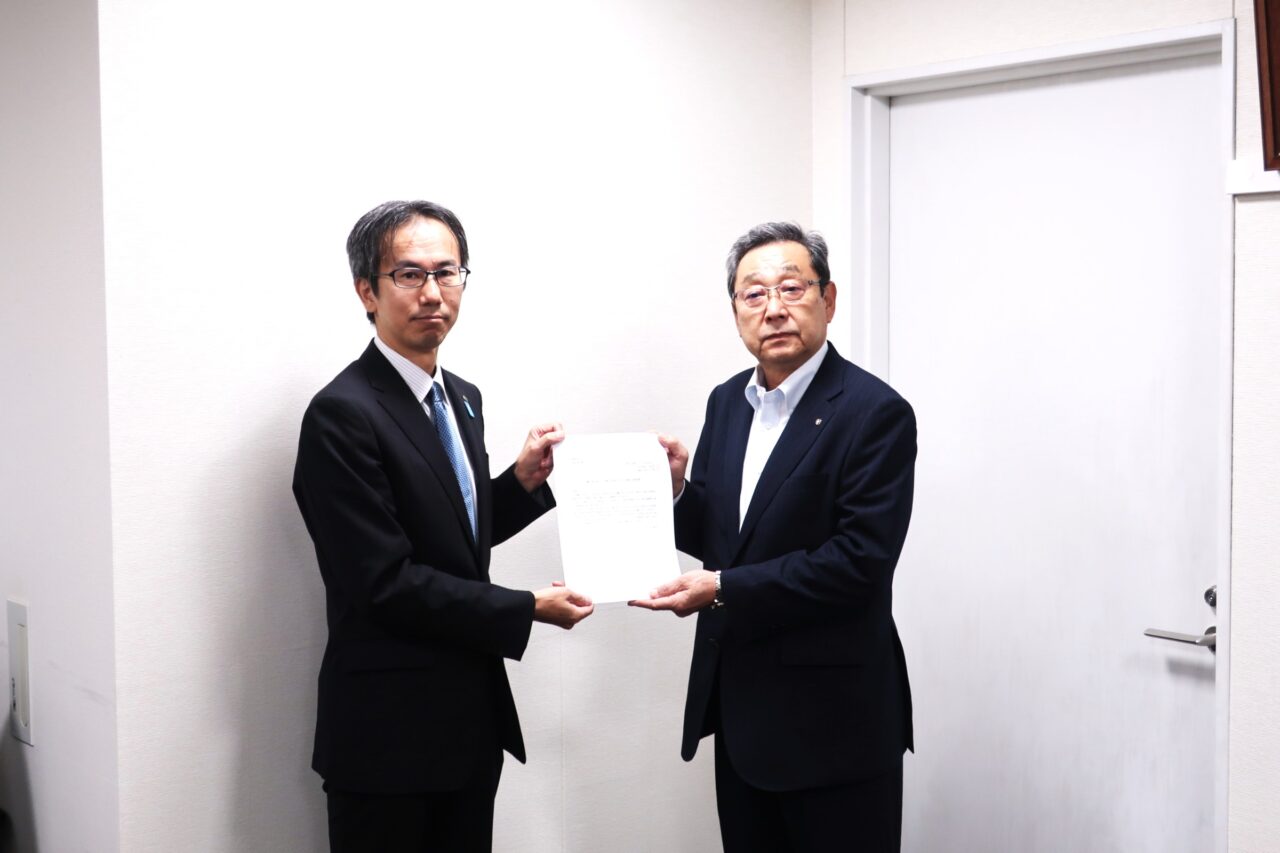 西多摩地区協は10月15日(水)、日の出町役場において東 亨 町長へ「2026政策・制度要請書」を提出しました。