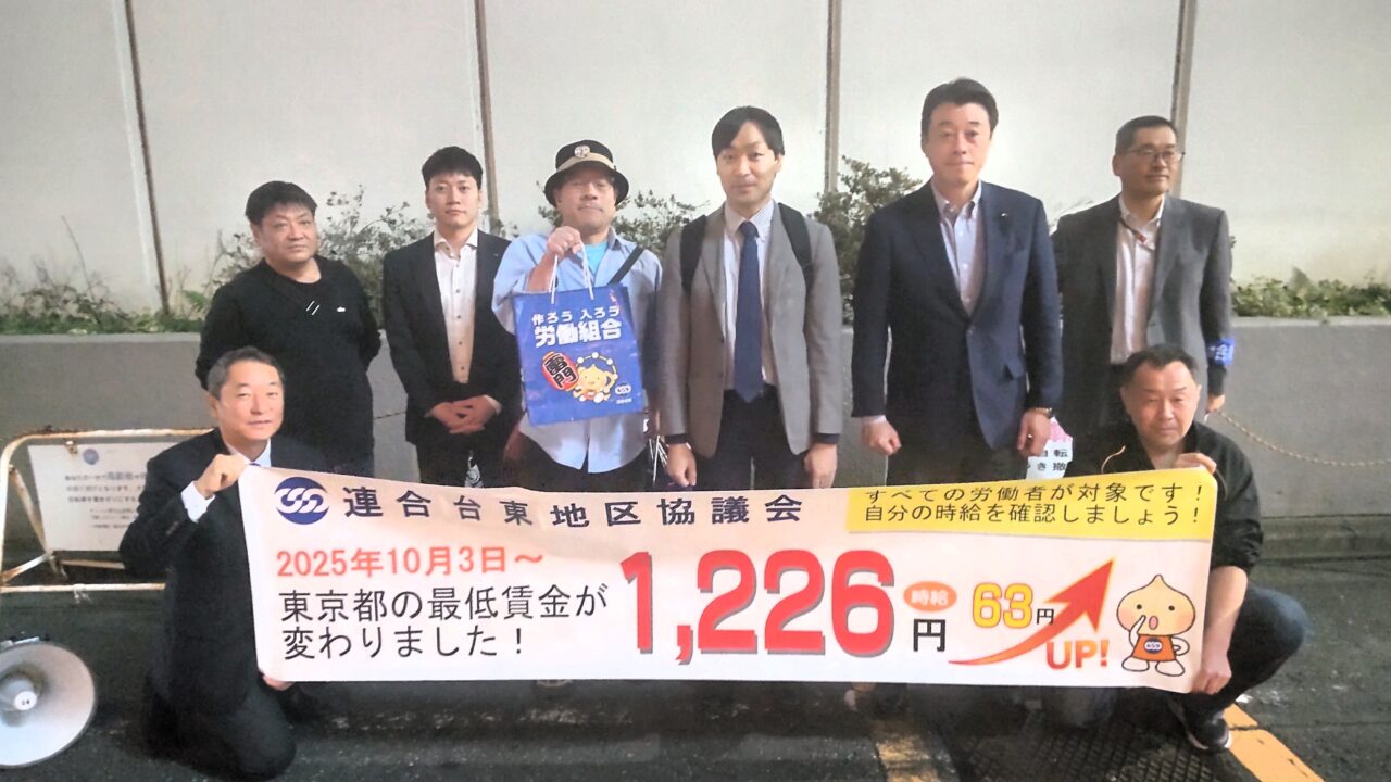 最低賃金が10月3日から63円アップの1,226円に改正~秋葉原駅前で最低賃金周知の街頭宣伝行動を実施~